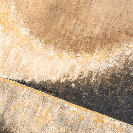 "This painting, created with natural colors such as ochre, sand, brown, and gold, is inspired by the music of SymphoCat, particularly the song 'Fog Borders Tape.' This ambient piece, played in an ongoing loop, evoked a profoundly peaceful feeling and transported me to another dimension."