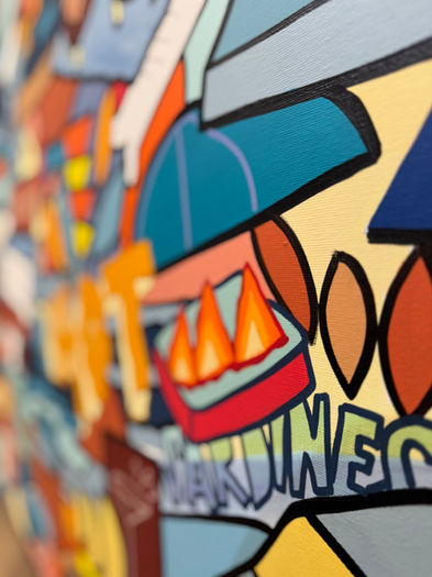 His work has gained increasing visibility through both collective and individual projects. In 2025 he realized a monumental public mural on rue de Bâle in Mulhouse, a landmark artwork that pays tribute to his hometown and celebrates its cultural vitality. He is also actively represented by respected art establishments, which confirms his place as a significant voice in today’s contemporary painting scene.