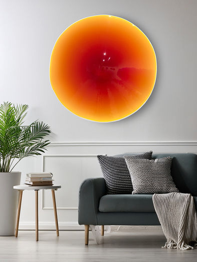 Each piece is hand cast in layered resin without the addition of other materials. This approach reveals the pure essence of the medium as subtle variations in light and color create ever changing visual effects. When viewed from different angles, the artworks appear to shift and breathe with the surrounding space.