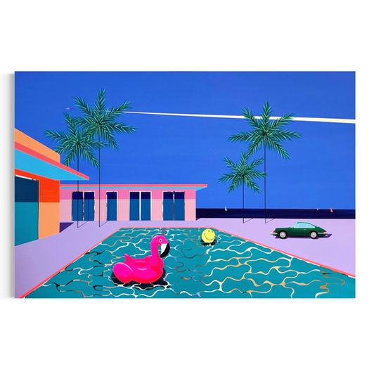 Born in Brussels in 1984, Isabelle’s art is deeply influenced by her love for travel, shaped by childhood memories of her grandmother’s sun-soaked life in Florida. Her paintings offer a visual escape, filled with bold colors and serene landscapes, blending calm with movement. Her use of mirrored plexiglas introduces a unique dynamic, where reflections and light transform each viewing into a personal experience that constantly evolves.